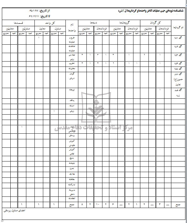 آمار نوبه ای نیروی انسانی (شهید و مجروح) لشکر32 انصارالحسین
