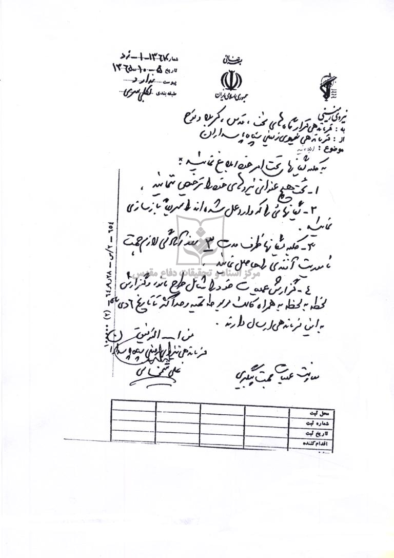 ابلاغ آماده باش آفندی از سوی فرماندهی نیروی زمینی سپاه به قرارگاه های نجف، قدس، کربلا و نوح