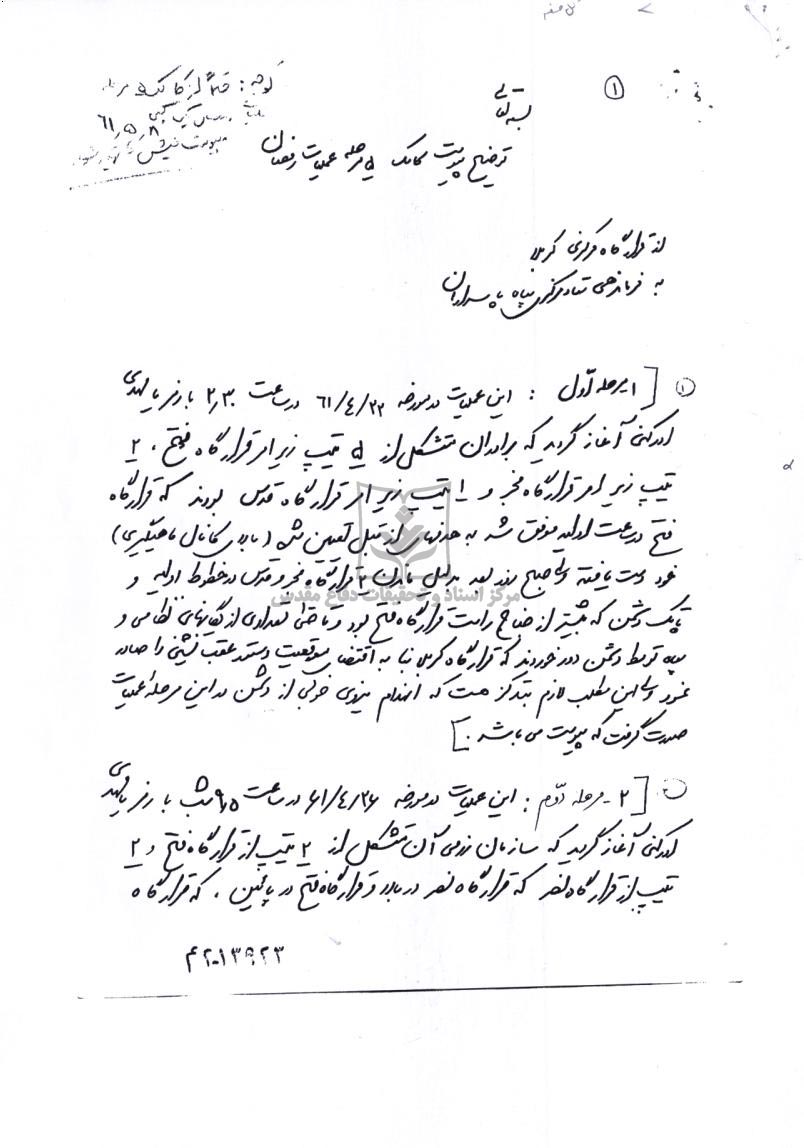ارسال گزارش تک شیمیایی به دفتر معاونت سیاسی تحقیقات جنگ
