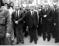 13/2/58 - تهران - شخصيتهاي دولت موقت از جمله : معينفر ، يدالله سحابي ، ابراهيم يزدي و … در تشيع جنازه شهيد مطهري