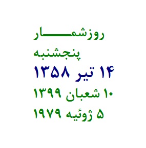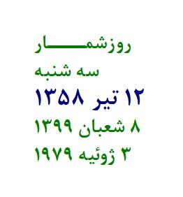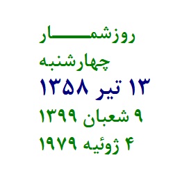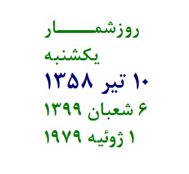روزشمــــار چهارشنبه 13 تير 1358 9 شعبان 1399 4 ژوئيه 1979 687 امروز فرودگاه اهواز در ساعت...