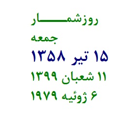 روزشمــــار جمعه 15 تير 1358 11 شعبان 1399 6 ژوئيه 1979 718 به دعوت جامعه روحانيت و...