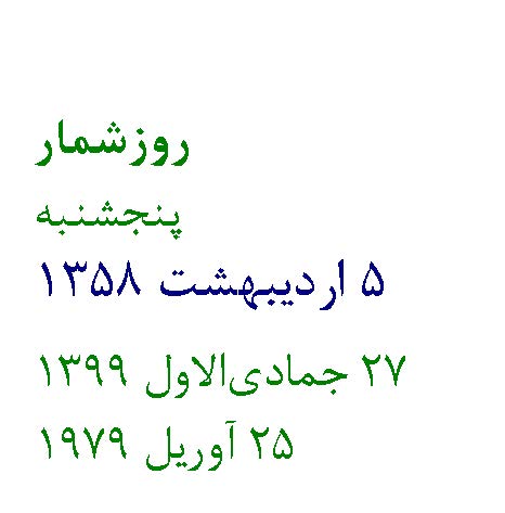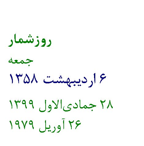 روزشمار پنجشنبه 5 ارديبهشت 1358 27 جماديالاول 1399 25 آوريل 1979 862 در پي فروكش كردن...