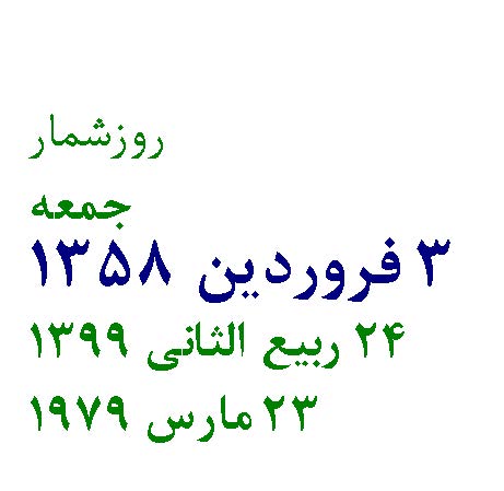 روزشمار جمعه 3 فروردين 1358 24 ربيع الثاني 1399 23 مارس 1979 476 در حالي كه هيأت اعزامي از...