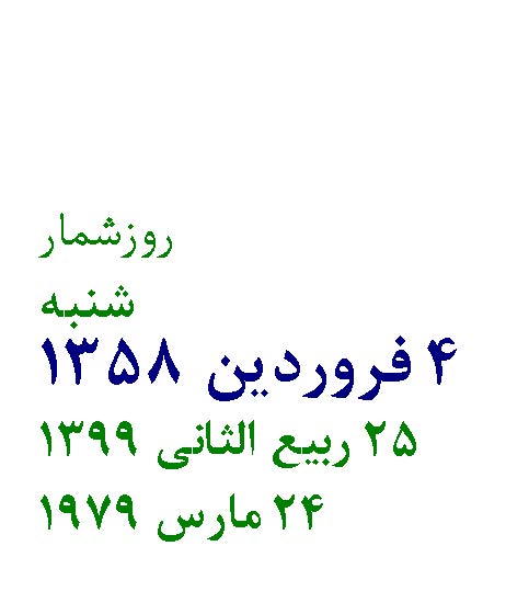 روزشمار شنبه 4 فروردين 1358 25 ربيع الثاني 1399 24 مارس 1979 484 صبح روز چهارم فروردين ،...