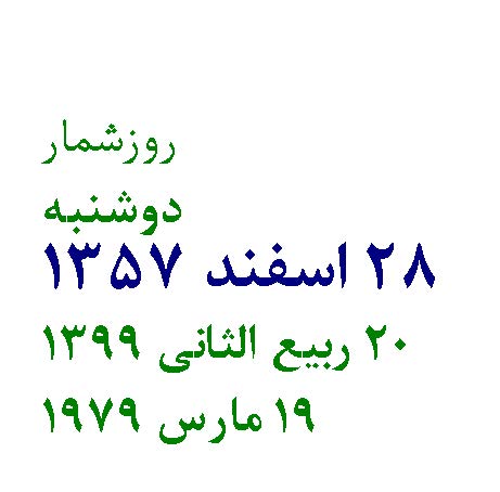 روزشمار چهارشنبه 8 فروردين 1358 29 ربيع الثاني 1399 28 مارس 1979 520 براي چهارمين روز متوالي...