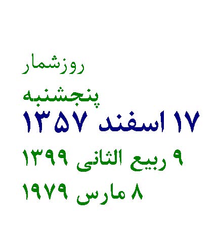 روزشمار پنجشنبه 17 اسفند 1357 9 ربيع الثاني 1399 8 مارس 1979 297 قانون بخشودگي و كاهش وظيفه...