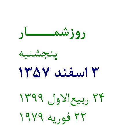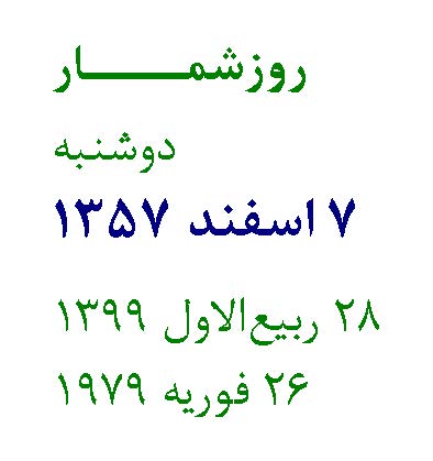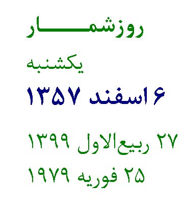 روزشمــــار چهارشنبه 2 اسفند 1357 23 ربيعالاول 1399 21 فوريه 1979 112 اميرانتظام سخنگوي...