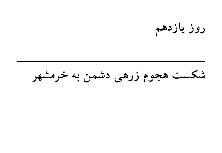 روز يازدهم شكست هجوم زرهي دشمن به خرمشهر 10 مهر 1359 22 ذيقعده 1400 2 اكتبر 1980 در يازدهمين...