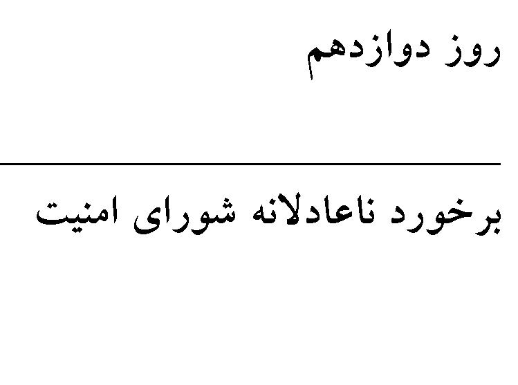 روز دوازدهم برخورد ناعادلانه شوراي امنيت 11 مهر 1359 23 ذيقعده 1400 3 اكتبر 1980 طي دوازدهمين...