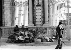 سازمان مجاهدين خلق كه طي چند سال گذشته با روند انقلاب بيگانه بود و از موضعي ضعيف و همراه با نابساماني تشكيلاتي و ايدئولوژيك صرفاً تماشاچي و نيز منتقد سير تحولات انقلاب بود در مرحله جديد تمام هم خود را مصروف كسب پايگاه مردمي از طريق نشان دادن اتصال خود با انقلاب، كرده است. بنابراين از هر موقعيت و هر مكاني براي مطرح كردن و تبليغ سازمان استفاده ميكند . از جمله نصب پوستري كه در آن آرم سازمان در كنار عكس امام چاپ شده است ، آنهم به نحوي سردستي و با عجله در لابلاي كيسههاي شن يك سنگر در كنار مجلس شورايملي .