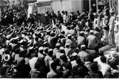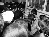 9/1/58 - قم - خروج اعضاي هيأت‌دولت از منزل امام‌خميني پس از ملاقات با ايشان -  محاصره نخست‌وزير توسط مردم هنگام سوار‌شدن بر ميني‌بوس