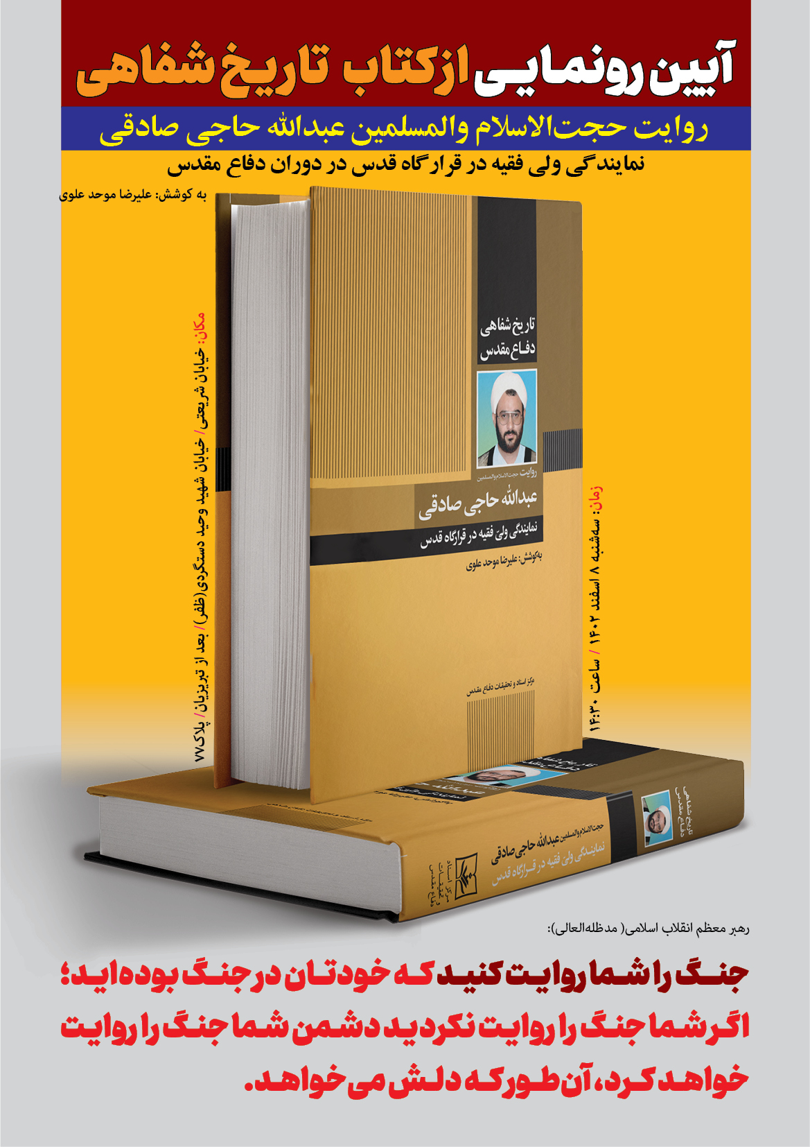 آیین رونمایی از کتاب «تاریخ شفاهی دفاع مقدس به روایت حجت‌الاسلام‌والمسلمین عبدالله حاجی صادقی نماینده ولی‌فقیه در قرارگاه قدس» برگزار می‌شود.