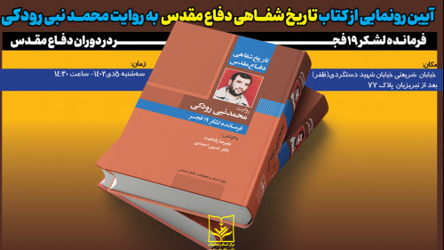 آیین رونمایی از کتاب «تاریخ شفاهی دفاع مقدس به روایت سردار محمد نبی رودکی فرمانده لشکر 19 فجر در دوران دفاع مقدس» برگزار میشود.