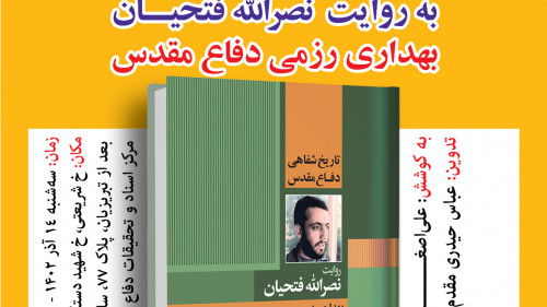 آیین رونمایی از کتاب «تاریخ شفاهی دفاع مقدس به روایت سردار سرتیپ پاسدار دکتر نصرالله فتحیان مسئول بهداری رزمی قرارگاه خاتم الانبیاء (ص) سپاه در دوران دفاع مقدس» برگزار می‌شود.