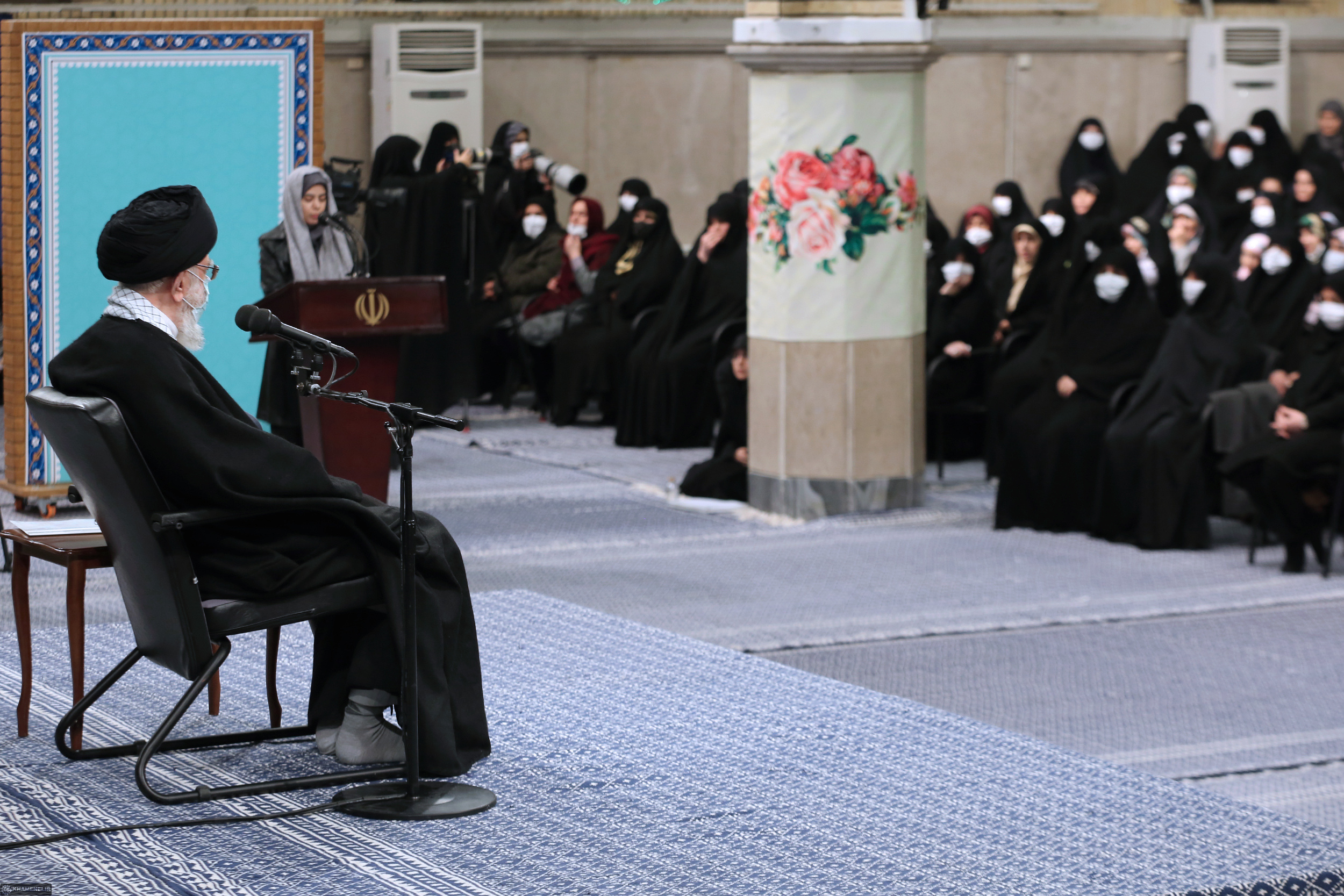 پیش از سخنان رهبر انقلاب اسلامی، ۷ تن از زنان حاضر در این دیدار، خانمها: