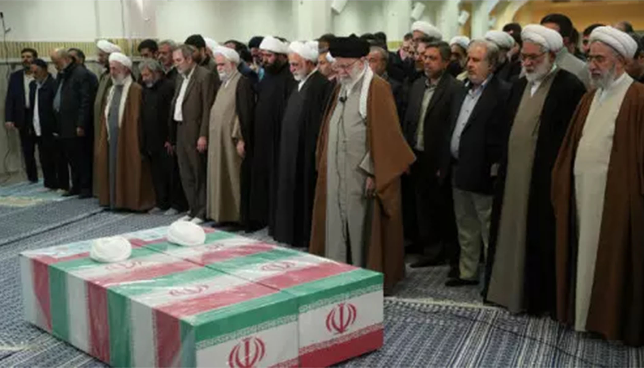 حضرت آیتالله خامنهای بر پیکر دو قاضی شهید حجج اسلام آقایان شیخ علی رازینی و شیخ محمد مقیسه اقامه نماز کردند.