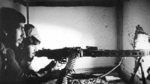 علی‌رضا و محمود به‌نوبت سر کوچه باحالت دست‌فنگ با تفنگ برنو، کشیک می‌دادند. یکی از آن‌ها دوستانشان را که در پشت مدرسه و کوچه مقابل بودند، می‌پایید و دیگری در فرورفتگی ورودی یک‌خانه می‌نشست و از پشت سر مراقب او بود.