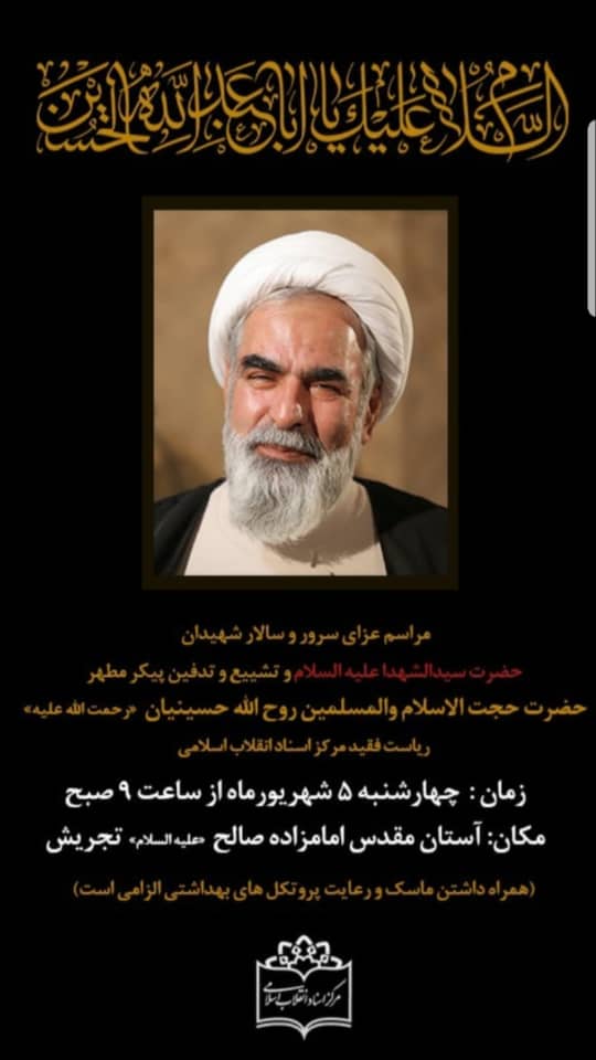 خبر درگذشت حجتالاسلاموالمسلمین روحالله حسینیان، رئیس مرکز اسناد انقلاب اسلامی باعث تأثر و تألم فراوان گردید.