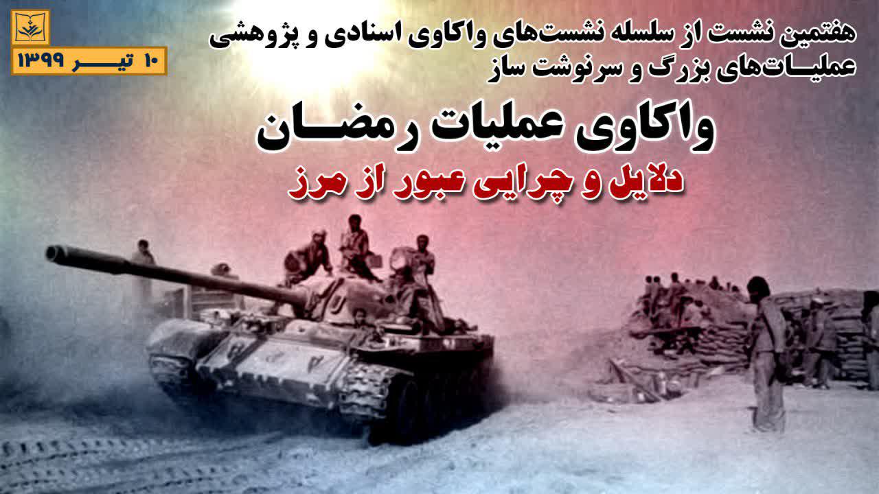 هفتمین نشست از سلسله نشستهای واکاوی اسنادی و پژوهشی عملیاتهای بزرگ و سرنوشتساز با عنوان «واکاوی عملیات رمضان؛ دلایل و چرایی عبور از مرز» در روز سهشنبه دهم تیرماه در مرکز اسناد و تحقیقات دفاع مقدس برگزار میشود.