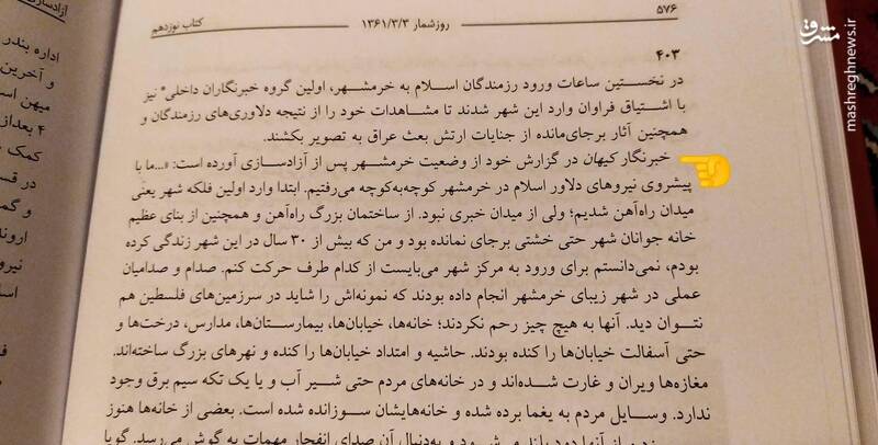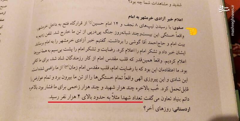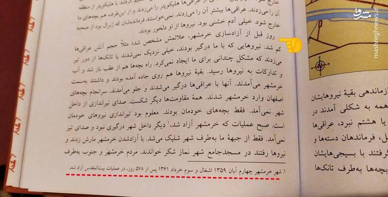 در بخشی از این کتاب که به آزادسازی خرمشهر مربوط میشود، آمده: