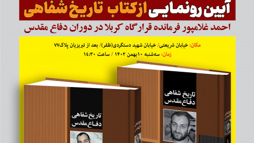 آیین رونمایی از کتاب «تاریخ شفاهی دفاع مقدس به روایت سردار احمد غلامپور فرمانده قرارگاه کربلا در دوران دفاع مقدس» برگزار میشود.