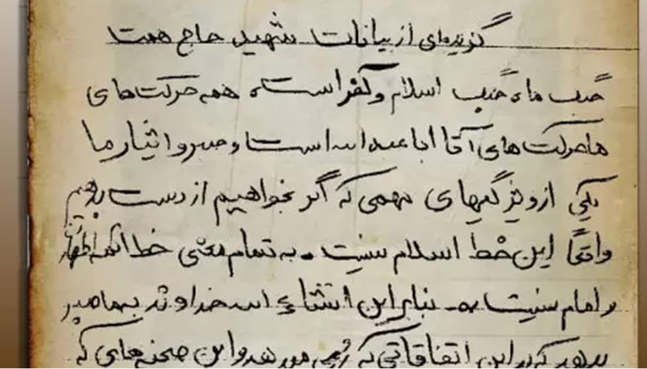 دستنوشته سپهبد شهید غلامعلی رشید درخصوص سردار رئوفینژاد